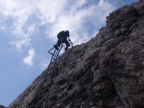 Na Brentu jsme šli předposlední den a zvládli jsme dvě ferraty - BENINI A SOSAT. Bohužel jsme museli odjet z Marillevy až v 10 hodin, takže na Groste jsme byli v 11. Na rozcesti nad Tuckettem jsme byli v 15,30 potom Sosat, Brentei, sentiero dei Orsi až do Madony 19,45