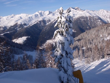 Po asi třech, čtyřech letech jsem se vyškrábala den před otevřením lanovek na Monte Vigo. Tentokrát ne na sněžnicích, ale na skialpinkách. Bolí z toho nohy, ale potom ten sjezd dolů stojí za tu námahu. No a ty panoramata. Bylo vidět do Madony di Campiglio, passo Groste, naše Sasso Rosso. Všechno bylo zalito pozdním odpoledním sluníčkem. No prostě pohoda, klídek....